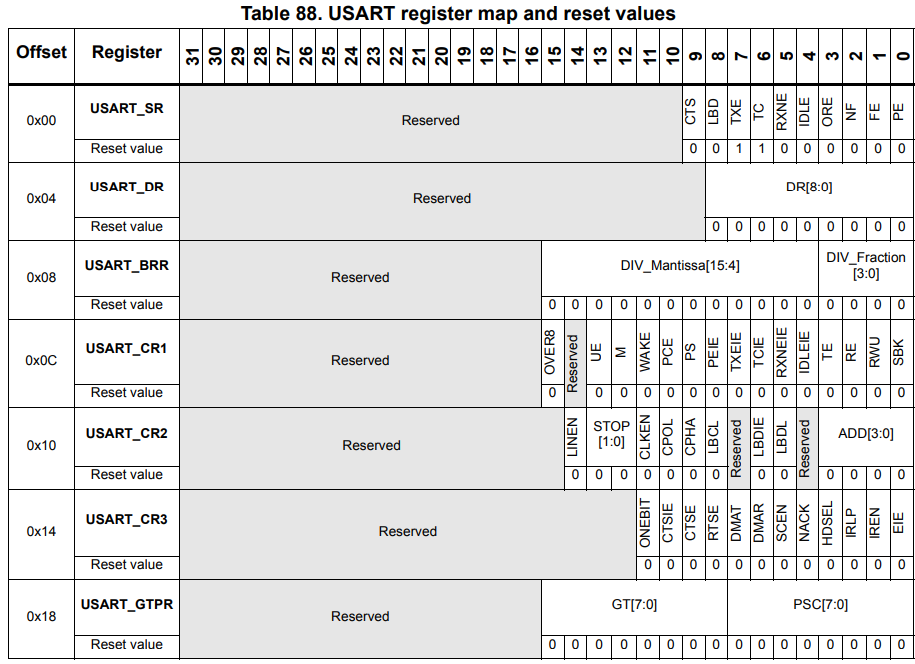 Well, first we need to take a look at the UART register map: